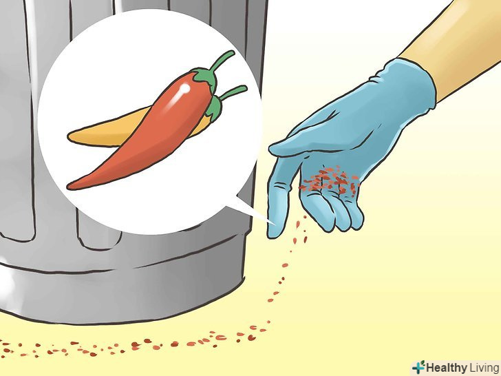 Посипте засобом проти єнотів навколо сміттєвих баків. єноти будуть уникати практично кожного подібного засобу.- Якщо ви не хочете використовувати цю речовину, замість нього можете взяти гострий або кайенский перець.