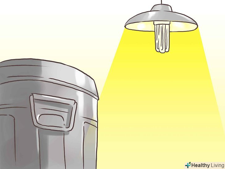 Встановіть освітлення з сенсорами руху там, де у вас стоять сміттєві баки. єноти віддають перевагу темряві, і раптове яскраве світло їх може налякати. Для цього підійде лапочки на 100 Ват. [7]