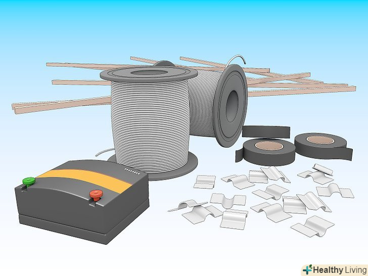 Визначте, яка саме електро-огорожа вам потрібна.- Якщо вам потрібна переносна огорожа, придбайте легке обладнання, таке як дріт і клейку стрічку, пластмасові стовпи, генератори з батарейним живленням і котушки. Якщо вам необхідна стаціонарна огорожа, слід купити високоякісні ізолятори (ізоляційні матеріали), ізоляційне дерево або дерев'яні стовпи. Для огорожі домашньої худоби необхідно використовувати високоміцні дроти, а для коней підходить стрічка і троси.