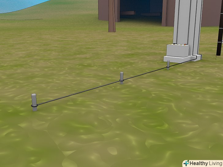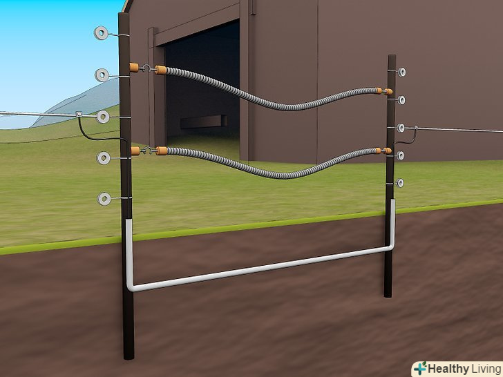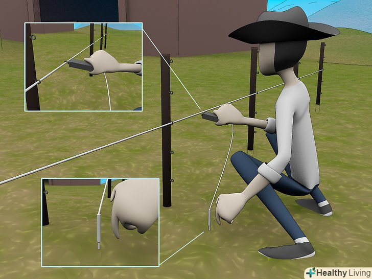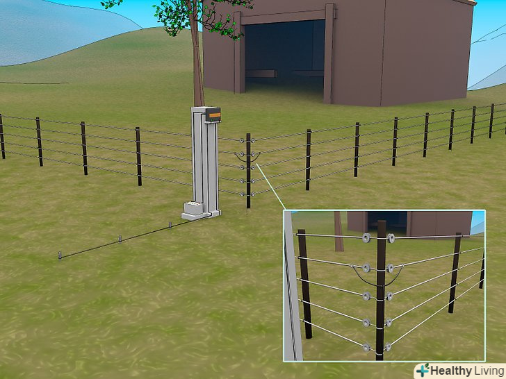Встановіть лінії огорожі. З'єднайте високоміцні дроти або трос і стрічку з ізоляторами, в залежності від виду тварин, яких ви захищаєте. До ваших електричних проводів додається інструкція, Як правильно їх розташувати.