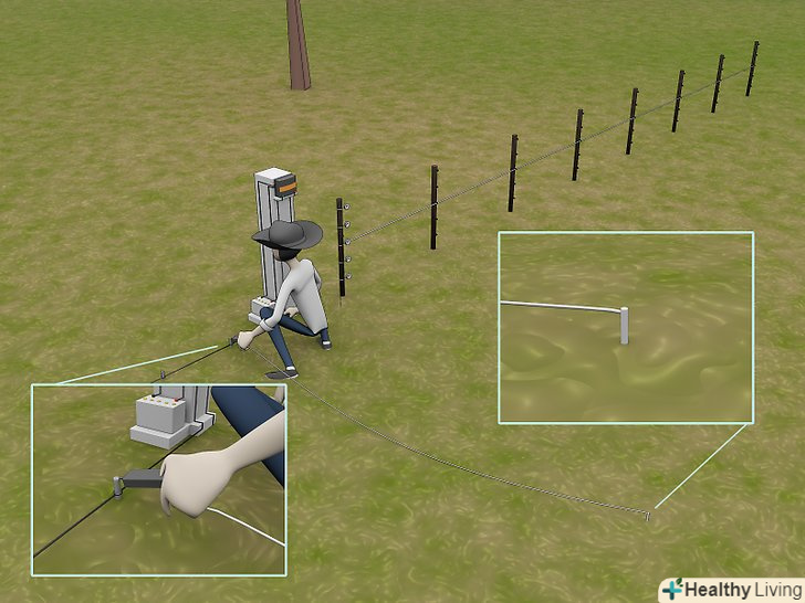 Сплануйте, де буде знаходитися клема для заземлення. для коректної роботи електро-огорожі необхідні оптимальні умови. Наприклад, електричний струм краще проходить у вологих умовах, ніж в сухих. Незважаючи на батарею, яку ви використовуєте, використовуйте принаймні метровий гальванізований стовп. Якщо у вас генератор працює від мережі і функціонує в умовах з поганою грунтом, наприклад піщаної, необхідний більш ніж 1 стовп. Якщо використовуються додаткові стовпи, відстань між ними має бути близько 3 м, і їх потрібно з'єднати вивідним кабелем.