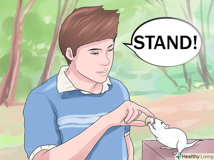 За допомогою частування змусьте щура встати. спробуйте підняти перед нею частування вгору. Ймовірно, вона встане. Негайно скажіть команду "стояти" і дайте частування. Тренувати щура досить просто, адже так?!