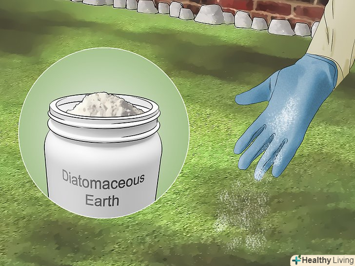 Раз в 7-10 днів посипайте землю кизельгуром. Кізельгур можна придбати в магазині товарів для саду та городу. Посипайте їм територію біля будинку і приділяйте особливу увагу затіненим ділянкам і тим місцям, де люблять перебувати ваші домашні вихованці. [13]- Найкраще наносити кизельгур вранці. Не посипайте їм землю у вітряну і дощову погоду, а також стежте, щоб він не потрапив на домашніх тварин. При попаданні в органи дихання кізельгур може дратувати їх.