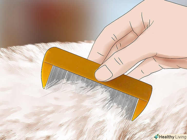 Щодня вичісуйте шерсть вихованця спеціальним гребінцем від бліх. хоча б раз в день розчісуйте суху шкіру домашнього вихованця гребінцем з частими зубами. При цьому періодично занурюйте гребінець в чашку з гарячим розчином води і спирту в пропорції 1:1, щоб убити вичесаних комах. [8]- Слідкуйте за блохами, які вискакують з шерсті тварини. Суху шерсть краще вичісувати, якщо помістити тварину в ванну — на її гладкій білій поверхні ви легко зможете помітити бліх.