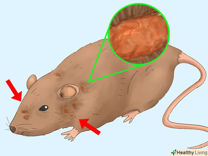 - Білі цятки на волосяних фолікулах щура (це і є тропічні кліщі, які при першій перевірки можуть бути схожі на звичайних кліщів)