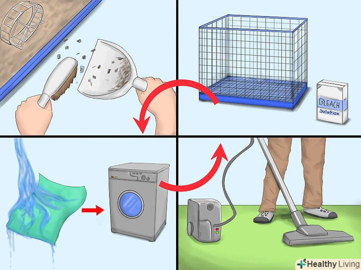 - Вимийте будь-які тканини в або навколо клітини і покладіть їх в сушарку на найвищу температуру. В ідеалі, не залишайте тканину поруч з кліткою, коли Щур проходить лікування.