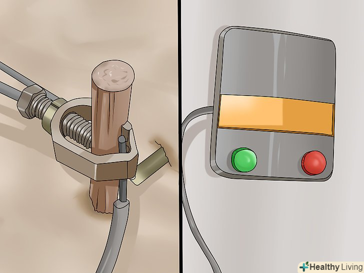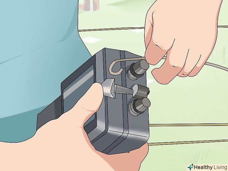 Встановіть електропровід і заземлюючий стрижень. круглий стрижень повинен бути вбитий так, щоб 99% його знаходилося в землі, і лише кілька сантиметрів виступало, досить для того, щоб встановити заземлюючий стрижень. Стрижень заземлення повинен бути поміщений не більше, ніж на 4,5 метра від електричного зарядного пристрою з високоміцним або телефонним проводом, що йде від стрижня заземлення до зарядного пристрою. Стрижень заземлення або вивідний провід не повинен торкатися до будь-яких електричних проводів.