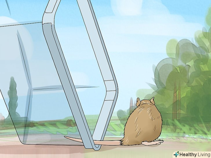 Одягніть рукавички. гризуни є носіями багатьох небезпечних хвороб, які вони можуть передавати людям. Щоб захистити себе від укусів, подряпин і зараження, обов'язково надіньте пару щільних рукавичок. [1]- Для цієї мети підійдуть робочі рукавички, садові рукавички для роботи з трояндами і міцні шкіряні рукавички.
