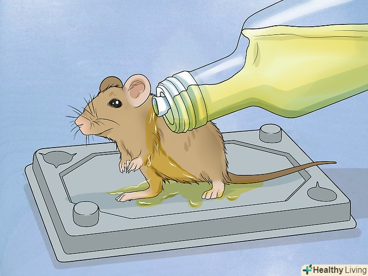 Вилийте на пастку рослинне масло. облийте маслом ту ділянку, де застрягла миша. Використовуйте якомога менше масла і по можливості постарайтеся не лити масло прямо на мишу. Ватним тампоном або ганчіркою втирайте масло в клей.- Хоча рідке рослинне масло ідеально підходить для цієї роботи, якщо його немає під рукою, можна взяти кулінарний спрей або дитяче масло. [3]