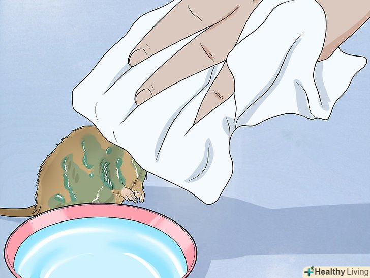 Витріть надлишки масла. замочіть стару ганчірку в теплій воді, а потім вичавіть її. Ганчіркою витріть залишки масла з лап, голови і тіла миші.- Оскільки масло негативно впливає на функцію регулювання температури тіла миші, витріть його якомога краще. [4]
