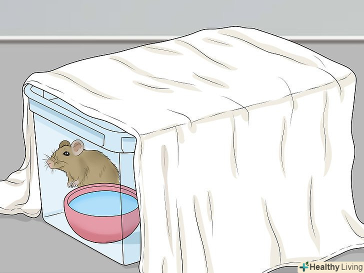 Дайте миші відпочити. помістіть в контейнер з мишею невелику миску з прісною водою. Накрийте контейнер рушником, щоб створити всередині темну, теплу і спокійну атмосферу. Дайте миші хоча б годинку, щоб відпочити і розслабитися. [5]