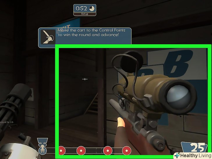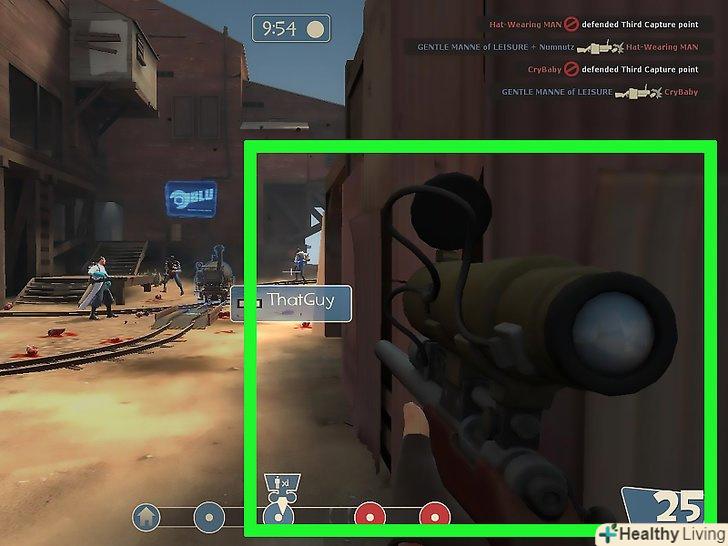 Мисліть стратегічно.Подумайте, де ви, снайпер, будете найефективніше. Враховуйте саме місце-ви ж снайпер, вам тісні маленькі кімнати противні. Вам краще знайти щось відокремлене і, бажано, щось на височини. Ще, само собою, треба ховатися від снайперів і шпигунів ворожої команди. Ну і наостанок-не лізьте ви в ближній бій, 125 одиниць здоров'я снайпера до цього не привертають.