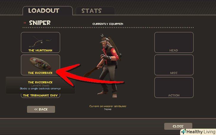 - Щит "Razorback" рятує від ножа в спину, тобто від шпигунів. Втім, захищає він всього від одного удару. Схема така: щит надітий на вас, вас атакує в спину шпигун, щит ламається, ви виживаєте, а шпигун не може атакувати або йти в невидимість протягом двох наступних секунд. Цей щит є однією з альтернатив для SMG в слоті додаткової зброї. Втім, незважаючи на те, що щит захистить від ножа, він не захистить від кулі з револьвера шпигуна, тому двічі подумайте, чи варто ним користуватися.