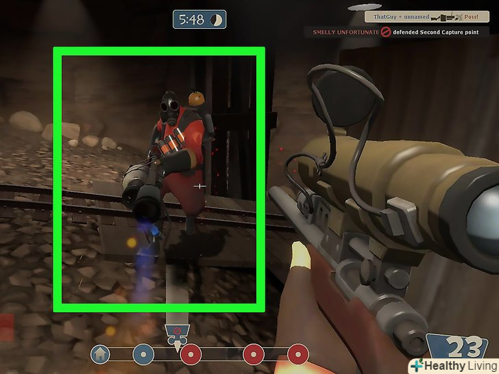 - Хедшот відразу вб'є медика, скаута, інженера, шпигуна та іншого снайпера. Щоб убити хеві, солдата, демомена або Піро, вам буде потрібно заряджений постріл. На повний заряд піде 3.3 секунди, хоча стільки зазвичай і не потрібно.