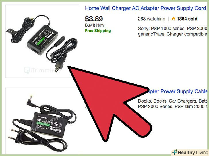 Зарядіть пристрій.PSP поставляється разом із зарядним пристроєм, який підключається до стандартної розетки. Вставте менший кінець зарядного пристрою в маленький жовтий роз'єм на нижній поверхні PSP справа, а інший кінець вставте в розетку. PSP має заряджатися кілька годин.