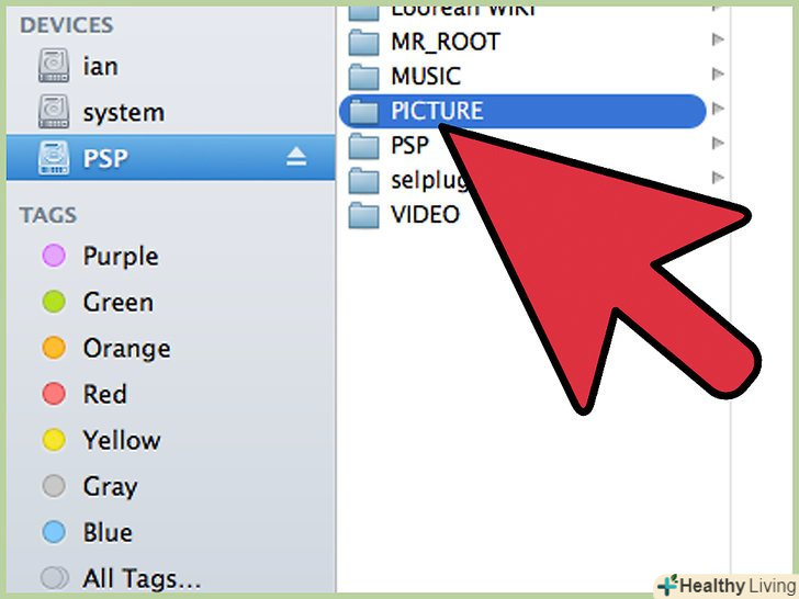 Завантаження зображень на PSP.якщо у вас прошивка 3.00, створіть папку PICTURE на карті пам'яті, не в папці PSP. Скопіюйте зображення в цю папку. Допустимі формати зображень-GIF, PNG, BMP і JPEG/JPG. Якщо у вас прошивка старше 2.70, створіть папку PHOTO всередині папки PSP і скопіюйте туди файли JPEG/JPG. Старі прошивки PSP не розпізнають формати GIF, PNG або BMP. Ви можете створювати підпапки в папці PICTURE, але не можете створювати папки в підпапках.