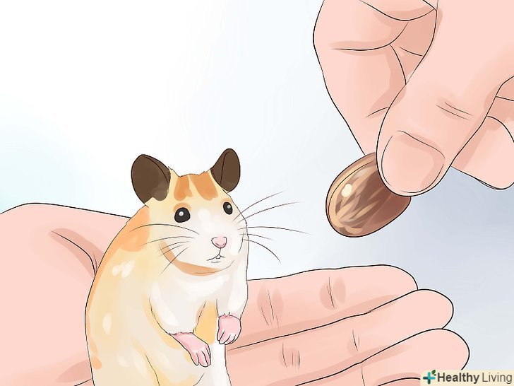 Тримайте руку в клітці під час годування. це хороший спосіб зблизитися з хом'яком і створити у нього позитивні асоціації. Коли будете годувати хом'яка однією рукою, інший можете гладити або тримати його. Поступово хом'як почне звикати до вас. [9]