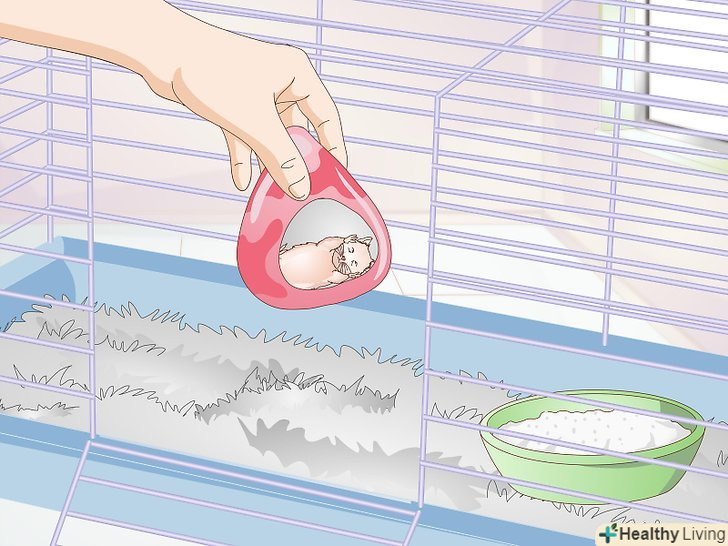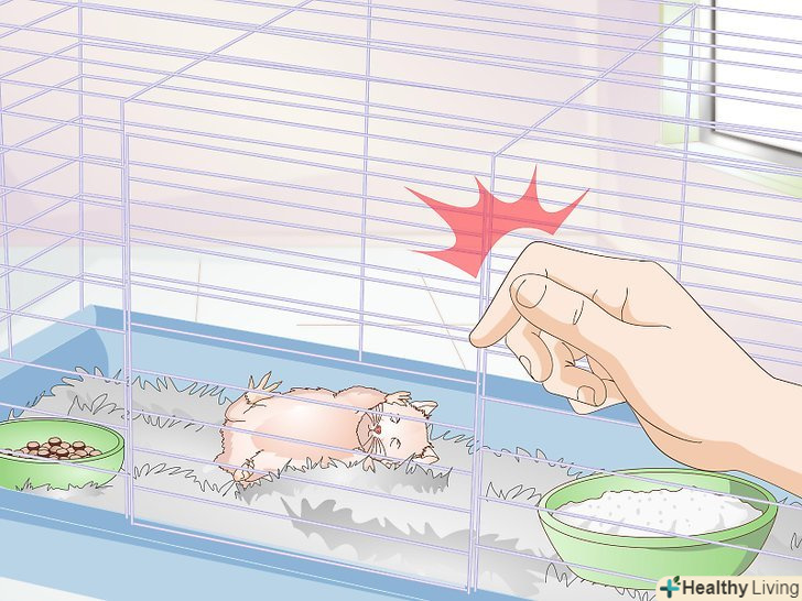 Неголосно постукайте по клітці. якщо ви злегка постукайте по клітці, неголосний звук і вібрація одночасно подіють на органи чуття хом'яка. Обережно водите пальцями по прутах клітини недалеко від сплячої тварини, поки воно не прокинеться. [8]