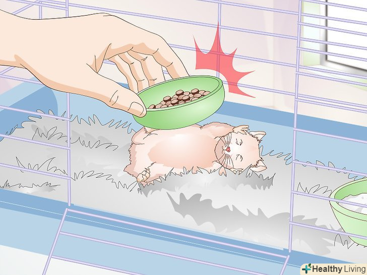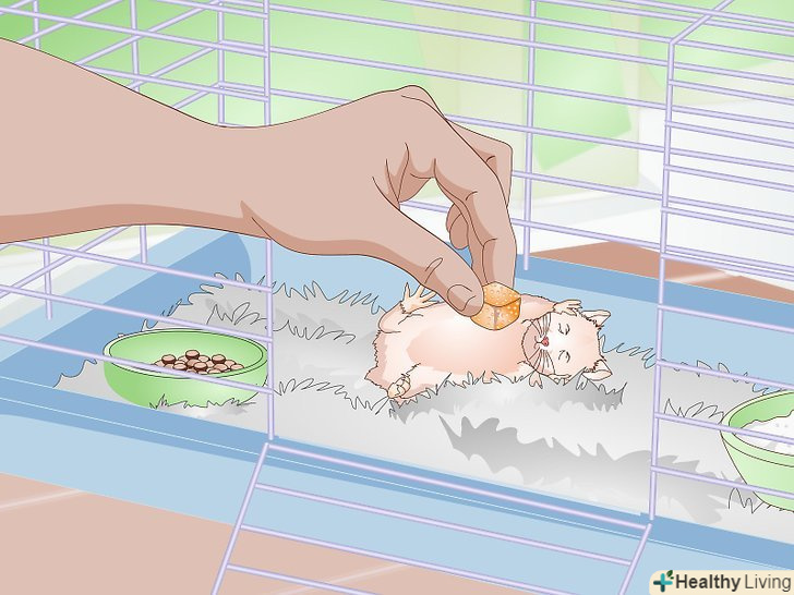 Запропонуйте хом'яку частування. ще один спосіб розбудити вихованця — запропонувати йому якісь ласощі. Спробуйте піднести частування до мордочки сплячого хом'ячка (досить близько, щоб він відчув запах) — швидше за все, апетитний запах розбудить тварина. [2]- В якості частування можна взяти шматочок овочів (наприклад, моркви або брокколі) або спеціальні ласощі для хом'ячків, які продаються в зоомагазинах.
