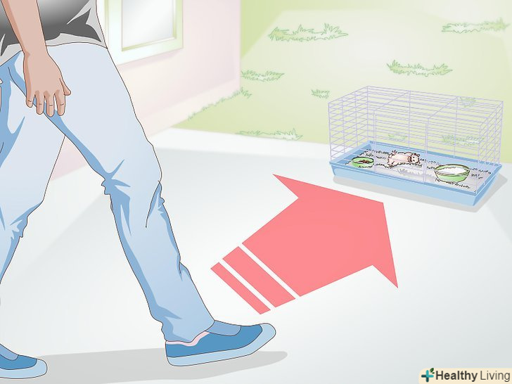 Рухайтеся повільно. не забувайте, що ваша мета — розбудити вихованця, не налякавши його. Тому намагайтеся не робити швидких і різких рухів. Навпаки, коли ви наближаєтеся до сплячого тварині, намагайтеся рухатися плавно і неквапливо. Так ви зможете розбудити його обережно, і хом'як прокинеться в гарному настрої. [4]