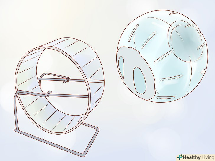 У клітці має бути достатньо іграшок та інших розваг. Хом'ячки-дуже енергійні тварини, і їм потрібно багато бігати і грати (особливо в нічний час). У хом'яка обов'язково повинні бути Іграшки і різні перешкоди.- Класичною іграшкою для хом'яка вважається бігове колесо. Колесо встановлюється на дні клітки або прикріплюється до стінки. Такі колеса зазвичай дуже галасливі, тому на ніч клітку з хом'яком краще переносити в іншу кімнату.