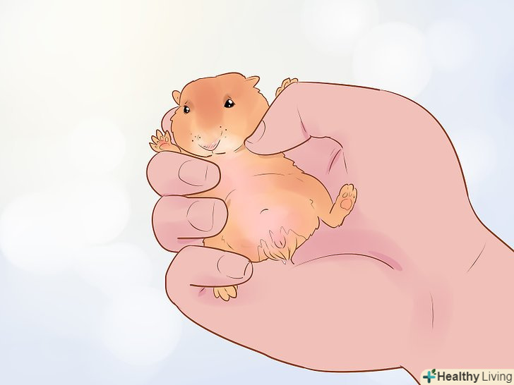 Навчіться брати хом'ячка на руки. у перші кілька днів не варто чіпати хом'яка, просто просуньте руку в клітку і дайте вихованцеві вас обнюхати. Хом'як повинен звикнути до вашого запаху. Пам'ятайте, що у хом'ячка дуже тендітні маленькі кістки, тому не стискайте його. Коли ви берете хом'ячка, намагайтеся підсунути руку під нього, а не схопити його зверху. Так хом'ячок буде відчувати себе більш спокійно. Спробуйте взяти хом'ячка на руки, коли він буде на підлозі. Коли тварина бачить, що може легко відступити і сховатися, то не стане чинити опір і кусатися.- Беріть хом'ячка на руки кожен день. Якщо ви забудете про нього на деякий час, хом'ячок не буде до вас так доброзичливий. Акуратно дістаньте хом'ячка з клітки і відпустіть його побігати по кімнаті. Хом'яка потрібно "вигулювати" хоча б раз в день. [16]
