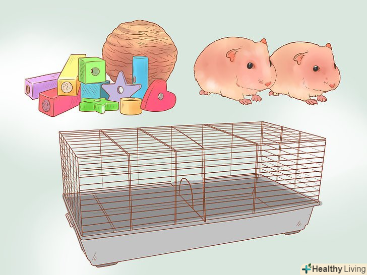 Виберіть клітку для свого хом'ячка. джунгарські хом'яки виростають до 10-11 см в довжину, їм потрібно багато простору, щоб грати і бігати. Клітка повинна бути просторою, щоб туди помістилися іграшки, будиночок, мисочка для їжі і поїлка. [2] виберіть один з наступних варіантів:- Тераріум для хом'ячка. Купіть спеціальний Акваріум, обладнаний для хом'ячків або для риб. Скляний акваріум захистить хом'ячка від протягів, спеки і холоду, в ньому йому буде зручно бігати і грати. Він повинен закриватися кришкою з сіткою, щоб хом'як не втік. [3]