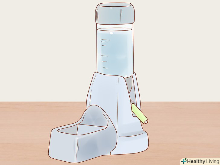 Купіть поїлку для хом'ячка. багато кліток для хом'яків продаються в комплекті з поїлкою, годівницею і будиночком, але якщо у вас її немає, обов'язково купіть! Хом'ячки п'ють воду зі спеціальних поїлок-пляшечок з трубочкою і металевою кулькою всередині. Налийте в поїлку питну воду і прикріпіть до клітки. [11]- Часто міняйте воду в поїлці. Навіть якщо води ще багато, і хом'ячок мало п'є. Міняйте воду кілька разів на тиждень. Не забудьте помити поїлку.