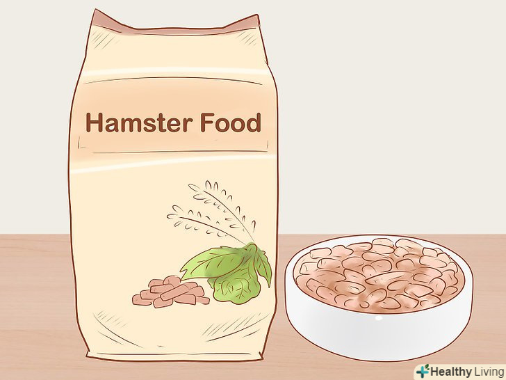 Купіть корм для хом'ячка. Корм можна насипати в пластикову годівницю. З неї хом'ячку буде зручно їсти, і корм не розгубиться по всій клітці. Хом'яки постійно голодні, тому в годівниці завжди повинен бути свіжий корм. Якщо корм промок або зіпсувався, викиньте його. У зоомагазинах величезний вибір кормів для гризунів, найчастіше корми поділяються на кілька категорій:- Корм в гранулах або шматочках, що становить основний раціон хом'яка.