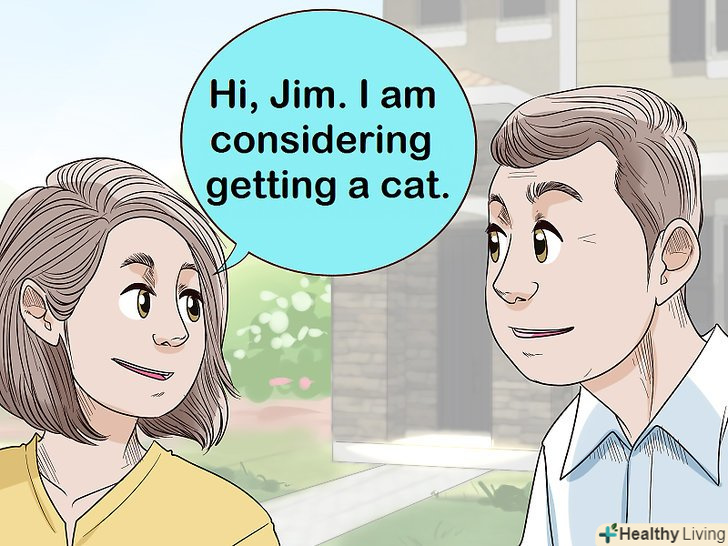 Поговоріть з орендодавцем. якщо ви живете на орендованій квартирі, перш ніж приносити домашнього улюбленця додому, важливо обговорити це питання з орендодавцем. Навіть якщо ваш договір оренди не забороняє вам тримати домашніх тварин, краще додатково переконатися в тому, що орендодавець не буде проти того, щоб ви завели якогось конкретного вихованця. Коротке повідомлення або телефонна розмова допоможуть вам знайти відповідь на це питання. [7]- Спробуйте звернутися до орендодавця зі словами: "Здрастуйте, Іван. Я думаю про придбання кота. Чи немає у вас з цього приводу особливих заперечень або Додаткових умов (в частині оплати оренди), про які мені слід було б знати?»