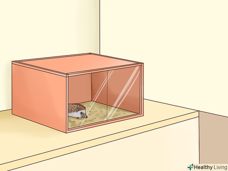 Забезпечте їжачка хорошою кліткою. їжачки потребують великої клітці, щоб відчувати себе в ній комфортно. Вони люблять досліджувати свій житловий простір, а в природі їх особиста зона проживання становить 198-305 метрів в діаметрі. Також є й інші фактори, які слід враховувати при виборі клітини для свого нового друга.- Клітина повинна бути досить великою. Мінімальні розміри клітини складають 46 х 61 см, але якщо ви можете собі дозволити більш простору клітку, то чим більше, тим краще. Краще мати клітку розміром 61 х 76 см, а клітина з розміром 76 х 76 см буде просто розкішною. [6]