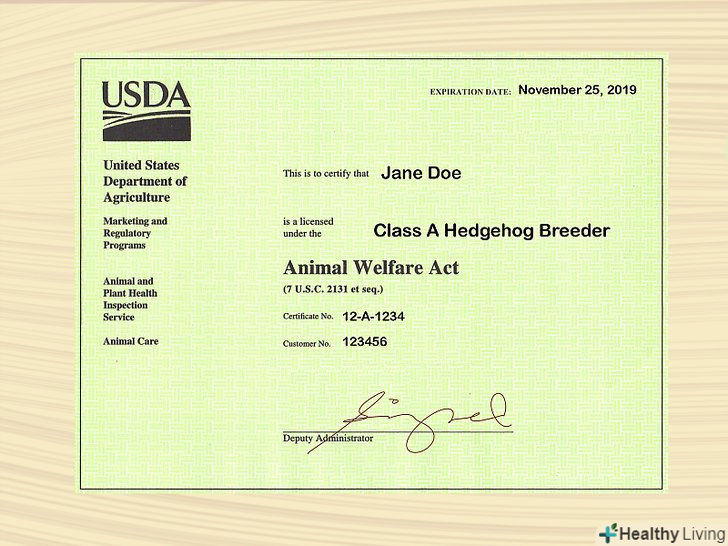 - Якщо ви купуєте Їжачка в США, то заводчик повинен мати ліцензію Міністерства сільського господарства США. Сама покупка в даному випадку буде супроводжуватися оформленням необхідної документації із зазначенням номера ліцензії заводчика.