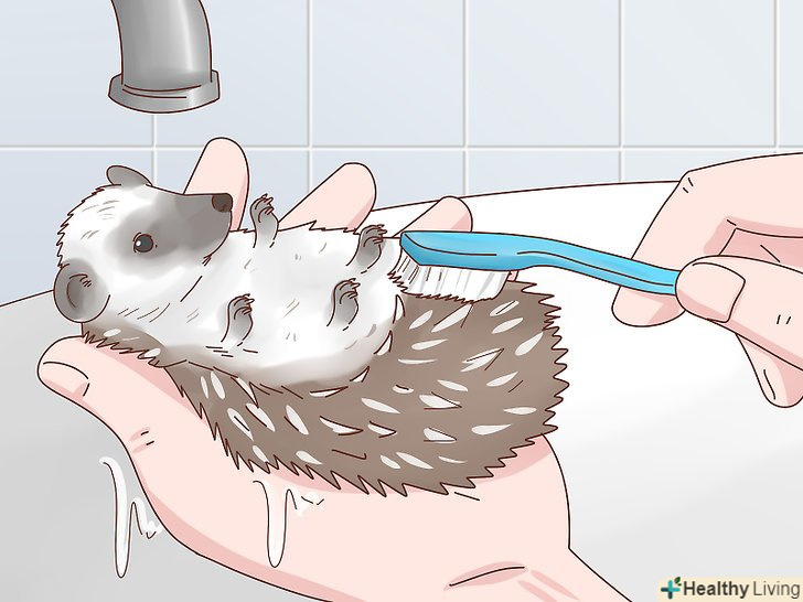 - Сполосніть їжачка теплою водою і витріть насухо чистим сухим рушником. Якщо ваш вихованець потерпить, можна скористатися феном на мінімальній потужності, в іншому випадку користуйтеся тільки рушником. Ніколи не саджайте Їжачка в клітку мокрим. [24]
