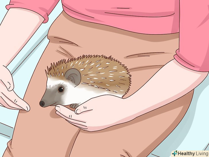 Регулярно беріть Їжачка в руки. спокійне ставлення їжачка до того, що його беруть на руки народжується з регулярності даної процедури. Коли берете їжачка, робіть це впевнено, вони не настільки крихкі, якими здаються. Загальним правилом є щоденне 30-хвилинне спілкування з їжачком на руках.- Наближайтеся до їжачка тихо і повільно. Беріть його, піднімаючи знизу, а потім підставляйте під тварину обидві руки. [23]