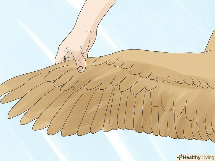 Витягніть крило і розправте махові пір'я. махові пір'я-це найдовші пір'я крила, які виглядають найбільш традиційно. Вони також іноді трохи іншого кольору, ніж інші пір'я. Вам необхідно підрізати перші 10 пір'я, які використовуються для зльоту. [1]- Краще, якщо одна людина буде тримати курку, а інший підрізати крила.