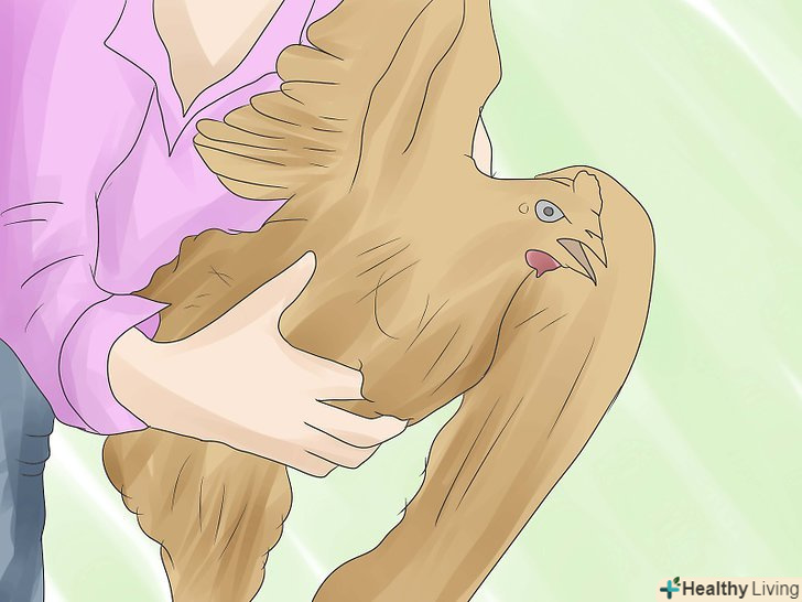 Спіймайте курку. вони швидкі, тому сказати легше, ніж зробити. Якщо кури в загоні, попросіть кого-небудь допомогти Вам загнати її в кут і зловити. Щоб прискорити процес, накрийте курку коробкою.- Якщо курка починає плескати крилами, м'яко утримуйте її своїми руками, притискаючи їх до тіла, поки курка трохи не заспокоїться.
