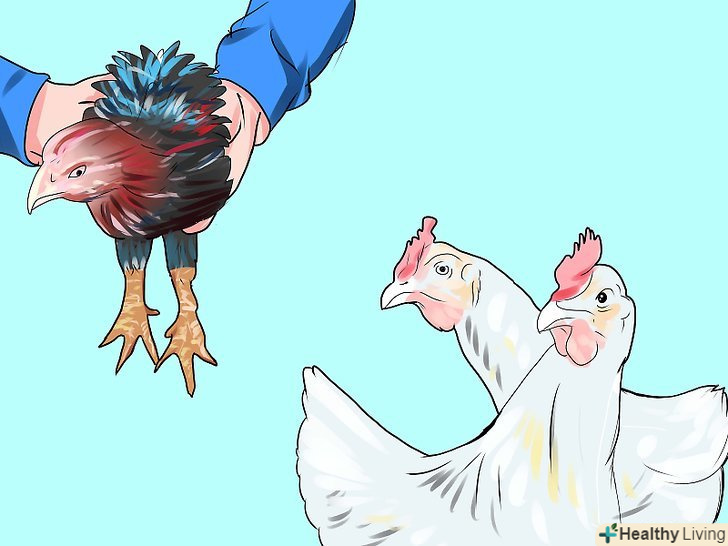 Познайомте курчат з іншими птахами. через 6 тижнів курчата будуть готові зустрітися з іншим поголів'ям птахів. Робіть це повільно, переконуючись, що кожен курча освоїться, перш ніж залишати його в зграї назовсім. Квочка допоможе тримати інших птахів у вузді на час перехідного періоду.