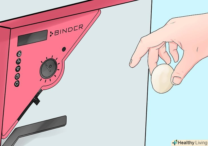 Купуйте інкубатор. ви можете зробити інкубатор самі або купити один в магазині фермерських товарів. Якщо ви купуєте інкубатор, переконайтеся, що у нього є простий контроль температури і вологості, а також опції для обертання яєць.- Один з визначальних факторів при виборі інкубатора – кількість яєць, які ви збираєтеся вивести. Зазвичай тільки 50-70% інкубованих яєць прокльовується, а половина з виведених курчат-півні.