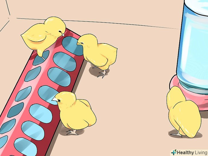 Підтримуйте постійну наявність корму і свіжої води. у курчат завжди повинен бути запас їжі і води. Курчатам потрібно спеціально призначений для них корм. У міру їх підростання курчат можна перевести на стандартний курячий корм.- Блюдця для води помилкові бути неглибокими, так як курчата легко можуть потонути у власній мисці з водою.
