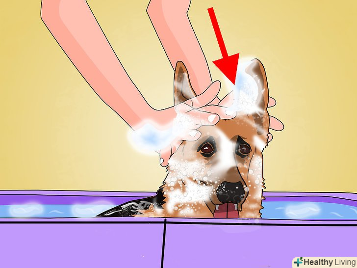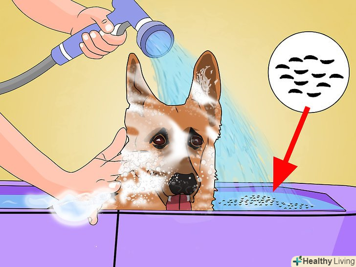 - Оскільки як тільки ви почнете намочувати бліх, вони побіжать до голови і мордочці вашого вихованця, то найкраще спочатку намочити і намилити тільки шию, а потім Інші частини тіла вашого вихованця. Це створить бар'єр для запобігання потрапляння бліх на мордочку і вуха вашого вихованця.