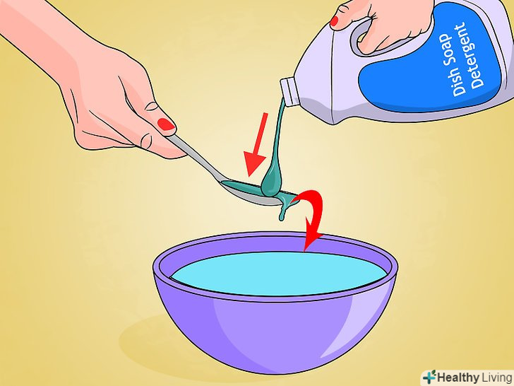 Інший метод. для домашніх тварин, які не можуть купатися, таких як кішки, візьміть миску і змішайте 2-3 чайні ложки миючого засобу і додайте води до обсягу трохи більше половини миски. Використовуйте ложку або вилку, щоб добре все перемішати до тих пір, поки суміш не почне пінитися.