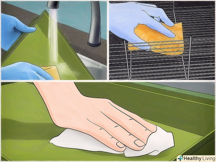 Як слід чистіть клітку свого вихованця. при серйозному зараженні блохами може знадобитися щотижнева глибока чистка клітини. Повне виведення бліх може зайняти тижні і навіть місяці. Це пояснюється тим, що більшість заходів діють на дорослих паразитів, в той час як яйця залишаються в шерсті, і з них згодом виростають нові дорослі комахи.- Використовуйте при чищенні клітини розведений відбілювач або миючий засіб. Протріть прути, колеса і підставки, а також внутрішню і зовнішню поверхню дна клітини. Після цього ретельно обполосніть клітку.