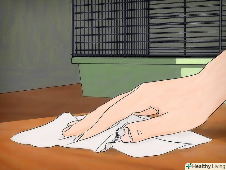 Очистіть простір навколо клітини. протріть всі поверхні розведеним відбілювачем і обробіть їх нешкідливими для домашніх тварин пестицидами, які годяться для використання всередині приміщень. Намагайтеся частіше (навіть щодня) очищати простір навколо клітини; при використанні пестициду дотримуйтесь вказівок на упаковці.- Придбайте і використовуйте інсектицид, що вбиває тільки дорослих комах, а також регулятор розвитку комах, який порушує їх гормональний баланс і перешкоджає розмноженню і відкладанню яєць. [5]