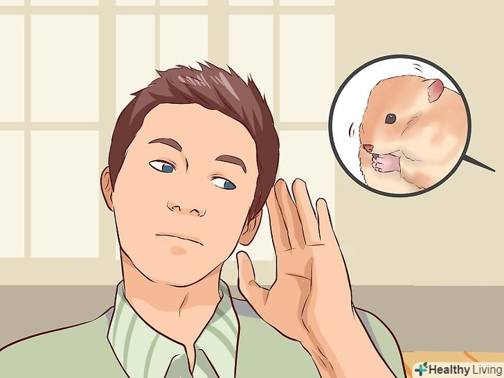 Прислухайтеся в кімнаті до звуків дряпання або жування. більшість хом'яків прогризають предмети, щоб потрапити всередину і сховатися. Хом'яки можуть прогризати або процарапивать будь-які предмети, навіть стіни будинку, пролазити в отвори діаметром 2,54 см.Вимкніть всі джерела шуму, а потім погасіть світло в кімнаті. Сядьте і прислухайтеся до звуків дряпання, жування або шерехів. Це допоможе визначити, де ховається хом'як. [5]
