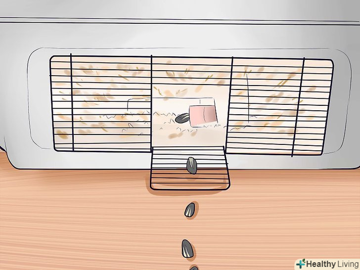 Залиште дверцята клітки відкритою на ніч. Хом'яки-нічні істоти, так що, ймовірно, хом'як буде більш активним в нічний час. Якщо на пошуки зниклого хом'яка ви витратили цілий день, спробуйте помістити насіння соняшнику в клітку і залиште дверцята клітки відкритою на ніч. Ваш хом'як може повернутися в клітку самостійно і, в кінцевому підсумку, залишитися в ній. [9]- Загляньте в клітку вранці, щоб перевірити, чи повернувся він в цілості й схоронності.