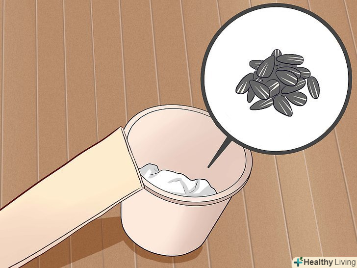 Використовуйте насіння соняшнику. якщо ви знаєте, в яку кімнату втік хом'як, і ви вже закрили всі можливі виходи і укриття, спробуйте приманити хом'яка насінням. [7]- Покладіть десять насіння соняшнику у напрямку до клітки хом'яка. Потім вимкніть світло в кімнаті і тихо сядьте в кут.
