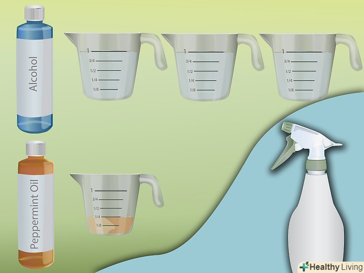 Зробіть суміш з м'ятного масла і спирту в пляшці з розпилювачем, щоб відлякувати бліх. змішайте три невеликих мірних чашки спирту і одну чверть чашки м'ятного масла, нехай суміш трохи настоїться. Перелийте розчин в пляшку з розпилювачем; розпилюйте на всі уражені блохами ділянки шкіри, особливо шию, спину і так далі. Можете також обробити підстилку тварини і килими.