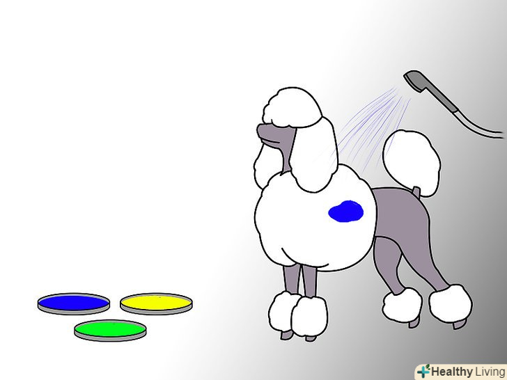 Висушіть вихованця і розподіліть фарбу по тих місцях, які ви захотіли пофарбувати в певні кольори.