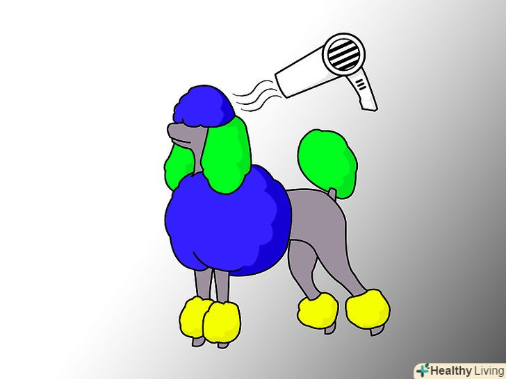 Після нанесення фарби висушіть вихованця заново. Фарба протримається кілька днів.