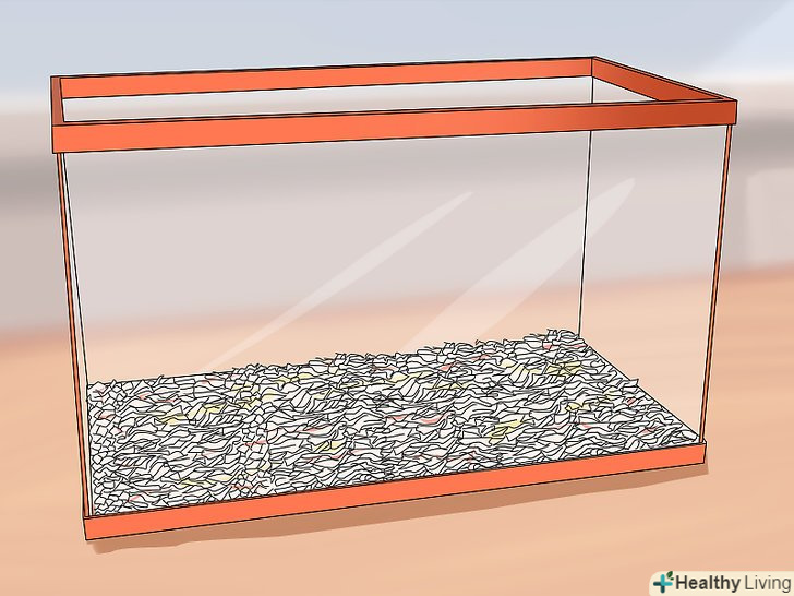 Додайте наповнювач. наповнювач-це матеріал, який поміщають на дно клітини. Для мишок найкраще вибрати подрібнену папір без чорнила. Помістіть наповнювач на дно клітини. Декількох сантиметрів наповнювача у висоту цілком достатньо. [3]